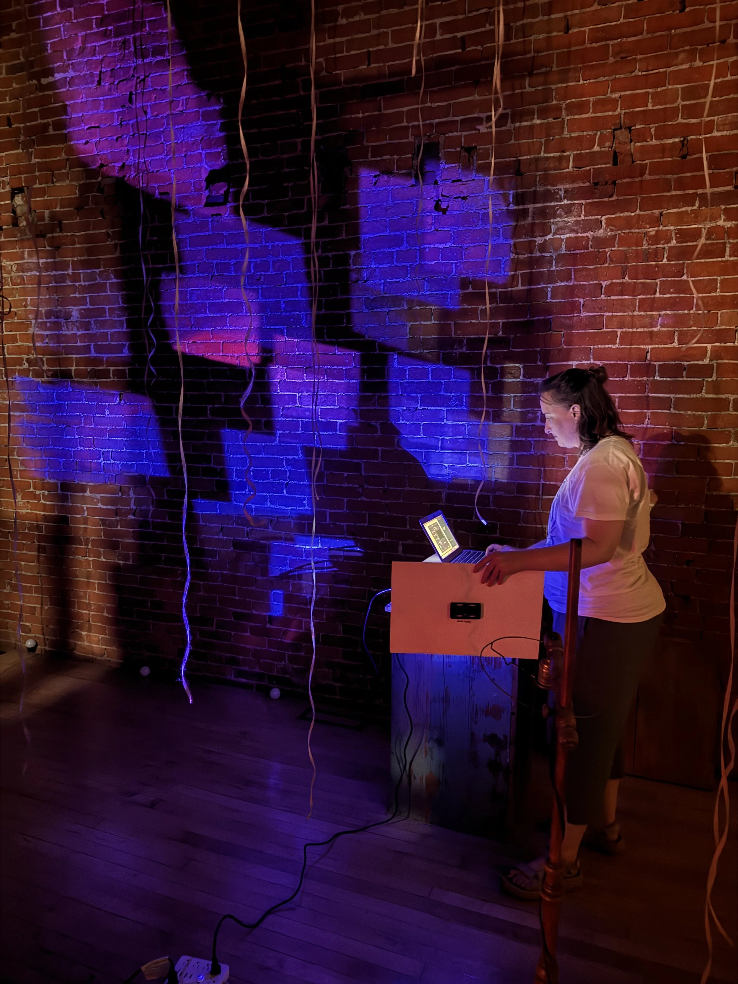My artistic practice explores the friction between virtual and real-world experiences, where anxiety, longing, and connection exist in dynamic tension across everyday life. My work combines video, sound, and sculpture into media installations that consider how technology shapes our relationships. I work with digital devices (repurposed phones, tablets, and speakers), mirrors and reflective surfaces, and low-tech media (like stethoscopes and projectors). I often incorporate participatory elements, encouraging viewers to engage physically and emotionally with my work. What drives me as an artist is a desire to stay present in an overstimulated, hyperconnected world. I create reflective, immersive experiences that invite viewers to slow down, notice their surroundings, and consider more intentional, embodied ways of connecting.
